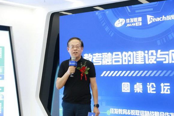 曾参与标准化考场起草的丁泉龙教授,深谙教育技术之道,从应用层面剖析技术需求,肯定了佳发与锐取的技术优势,并就教考系统的融合展开了富有深度的技术解读与优化意见。