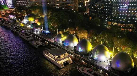 2019年9月24日-10月7日上海北外滩21个巨型彩蛋正式亮灯惊艳上海。炫彩球幕与浦江两岸璀璨夜色交相辉映。数字多媒体艺术与北外滩实景相结合,新奇炫酷。由30多位一流艺术家、200多个高新科技团队联手打造了21个美轮美奂的穹顶艺术宇宙。
