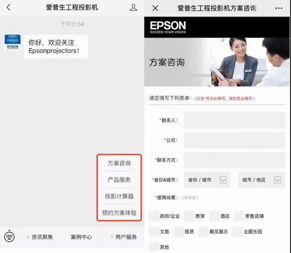 如果有项目需求,可以在“爱普生工程投影机”公众号菜单栏点击【用户服务-方案咨询】留下自己的需求哦~