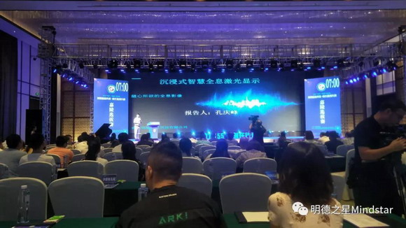 同时,在本次路演过程中,孔庆峰还带来了公司最新的、自主研发的激光微投设备,本设备具有高亮度、4K分辨率、体积小、易携带等优势,获得了在场评委的一致好评、肯定!
