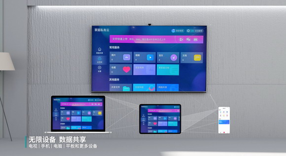 除了算力,新一代社交电视还针对存储空间的痛点进行了突破,首次创造性地将NAS和大屏相结合,标配1TB的私有云空间。同时,依托海信在云存储、云计算上的技术积累,通过自主研发的Hi Drop数据传输与同步方式,打通手机、电脑、电视等设备间的屏障,实现数据的无缝流转。