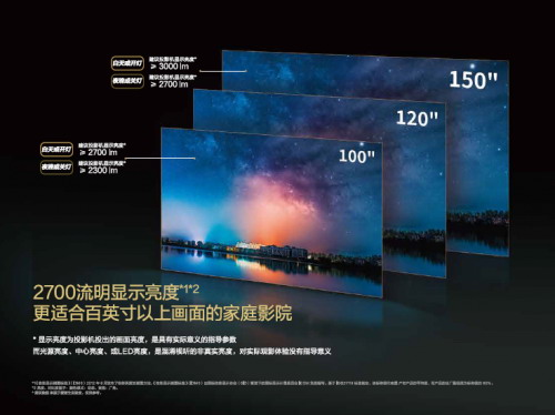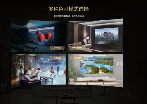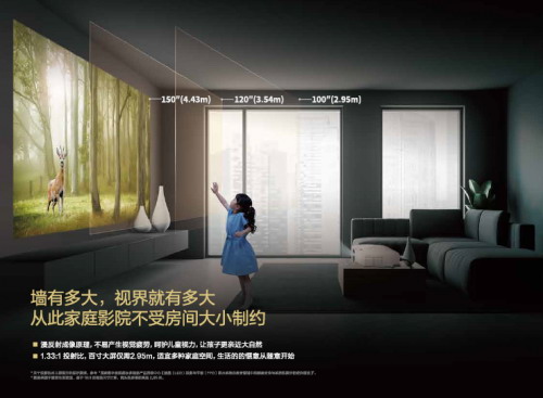 大范围焦距及高倍广角镜头,约3米就可以轻松投放出百寸大屏。百英寸巨幕画面下,画质依然感人,分毫毕现,丰富逼真,还原度高。让家庭影院不再受空间限制,墙有多大,画面就有多大,不论是卧室还是客厅,随时随地畅享家庭影院。