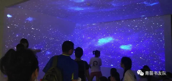眼前大大的拼墙吸引了同学们的注意,跟学校的投影机不一样的是这个是采用背投的方式投射的画面,和旁边液晶画面对比,投影投射的画面非常的柔和完全不刺眼,而且也不会发热,没有辐射伤害。