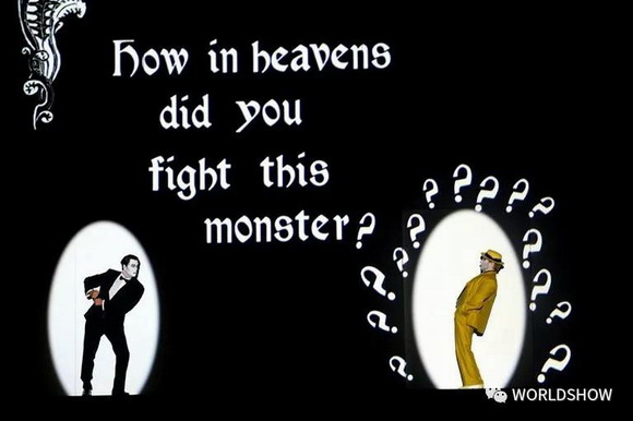 墙上包括表演者进入,退出和出现的各种出入口。动画制作人员仅使用一台投影机,就可以用无声电影风格的图形、卡通和文字来增强舞台效果。最重要的是,它减轻了冗长的叙述性内容。