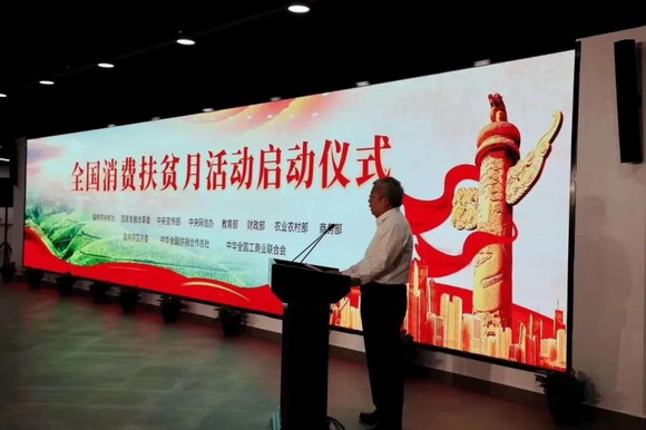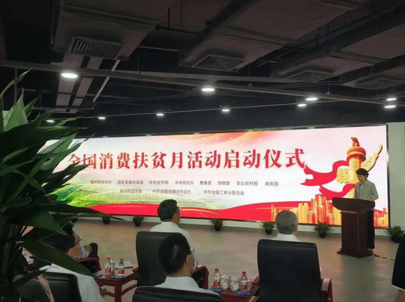 全国消费扶贫月活动是由国务院扶贫办、国家发展改革委、中央宣传部、中央网信办、教育部、财政部、农业农村部、商务部、国务院国资委、中华全国供销合作总社、全国工商联等11个部委共同主办。各部委领导及联合发起单位的领导、嘉宾,二百余人参加了启动仪式,共同发起了消费扶贫行动倡议书,引导和动员全社会购买和帮助销售扶贫产品。