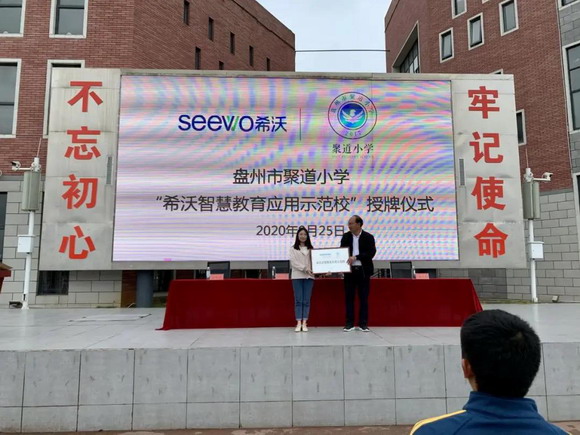 2020年9月25日上午,为推动教育信息化发展,满足智慧课堂建设的需求,希沃与盘州市聚道小学基于良好的长期合作关系,签订了战略合作协议。盘州市聚道小学唐校长等相关领导出席了本次活动。唐校长在讲话中指出:“希沃与本校始终保持紧密良好的合作,将先进的技术、更优化的理念带给我校,双方在智慧学校创建及探索研究有更深入的讨论。”