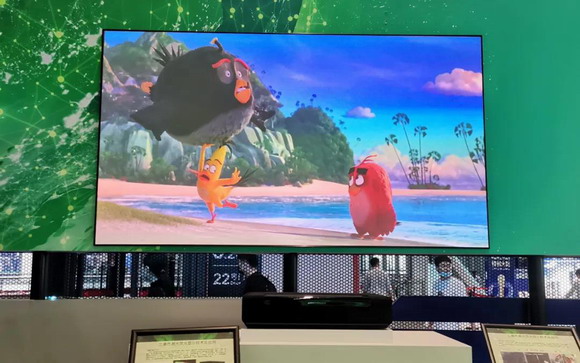 (工博会现场所展示的百吋激光电视)