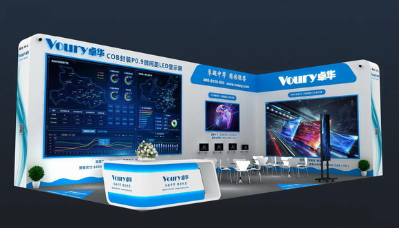 Voury卓华展位主屏指挥中心采用COB封装P0.9微间距LED组成,整屏分辨率将达到6400×3600高清分辨率;辅屏模拟报告厅采用SMD金线封装P1.2微间距LED,整屏分辨率将达到3840×2160(4K);全新产品倒装 COB 展示屏,整屏分辨率将达到1920×1080;现场还会有智慧传媒镜子屏精彩展示。