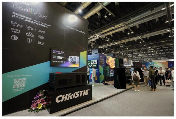 出亮度高达 55,000 DCI 流明的 Christie CP4450-RGB 纯激光电影放映机以静态形式亮相展台。采用双激光器光学系统(LOS)和高速 CineLife+ 电子平台,以 4K 分辨率播放 120 帧/秒的高帧率内容,是采用 Christie RealLaser 技术的高端格式放映机,可用于宽达 33 米的银幕。