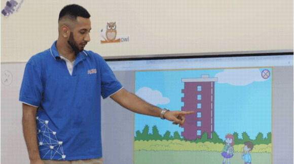 “我会用希沃播放视频,让孩子们跟着视频一起唱歌。这是另一种快速学习英语的方式。我还会带他们在屏幕前玩玩小游戏,确保他们不会坐太久,并在课堂上保持活跃。”外教Kadir表示。Kadir来自美国,在他的课堂中,总是充满着孩子们银铃般的笑声,大家时而跟着他喊出英语,时而被他小动作逗笑。如今,他和Miya合作的英语课,成为敲开孩子和家长“心门”的金牌试听课。