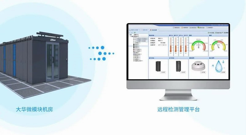 大华微模块机房基于冷/热通道封闭系统,减少风量和冷量损耗,提高功率密度,降低能耗PUE,从而实现节能环保,降本增效;通过精密空调7*24小时无限调节运作,恒温除湿除尘,为设备稳定运行提供环境保障。