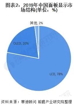 目前,面板市场主流的两大产品分别为LCD和OLED,LCD在价格、使用寿命上优于OLED,而OLED则在黑度、对比度等优于LCD。在中国,2019年LCD占据了78%左右的市场份额,而OLED则占20%左右。