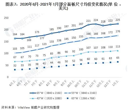 根据WitsView新报价,55'W(3840 x 2160)面板均价已经由2020年6月的103美元涨价至2020年1月上旬176美元,短短7个月涨了73美元。