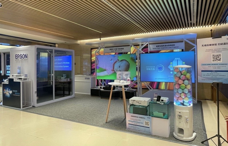 2021年3月14日-3月16日,“突破视界 影享未来”2021爱普生商务投影机巡展在北京华贸购物中心B1层顺利开展!会议神器CB-L200F高亮激光商用投影机、沉浸式影音EH-LS500激光电视、全球最小3LCD激光投影机EF-11(数据来源Futuresource)……多款重塑影音“视界”的新品投影机,多个科技感+新鲜感十足的方案体验区,为参观者带来了充满趣味的“出彩”影音“视界”新体验。