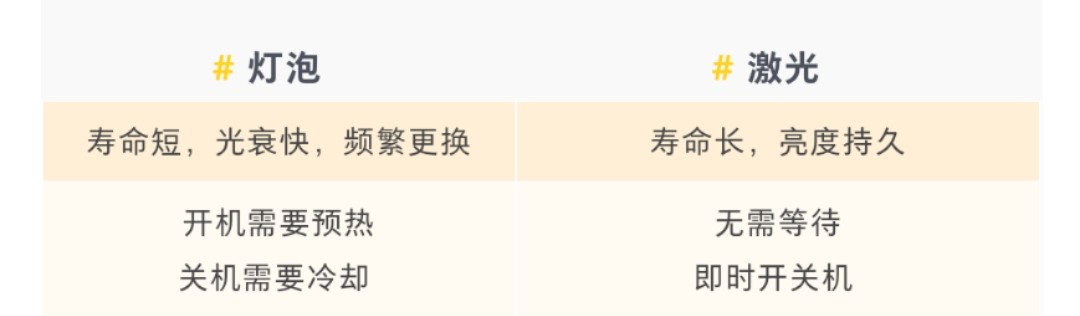 激光和灯泡,并不仅仅是光源的区别。激光代替灯泡,让后期维护、日常使用和安全稳定性等方方面面,都实现体验升级。