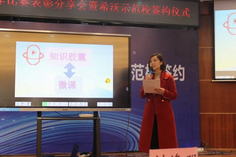 接着,学校为参加本次希沃知识胶囊大赛的优秀教师进行了颁奖。在大赛中,毕成平、熊小芳老师作为教师代表分别展示了在不同学科中知识胶囊的制作及运用。两位老师的精彩分享给台下老师们带来无尽的启发,相信未来,学校的每一位老师都会在智慧课堂的道路上越走越远、越走越坚定。