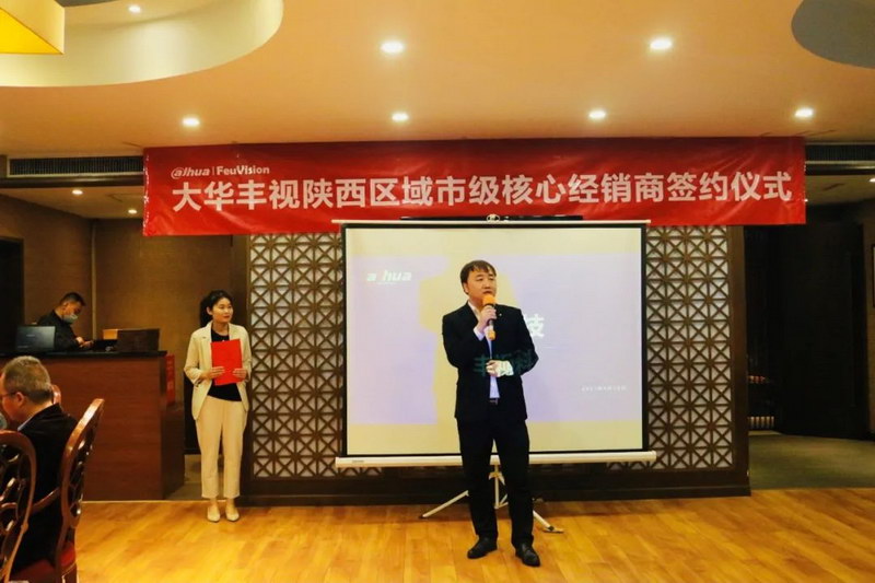 随后,陕西区域中小企业主管李总致仪式词,李总对于客户在区域渠道市场推动非常支持,希望在今后的合作中双方更为紧密,所有的合作伙伴能够通过大华及丰视科技的公司平台有质的提升,踏实做好渠道下沉,品牌推广,体系化建设等工作。同时,对于2021年丰视渠道业务市场拓展表达了十足信心。