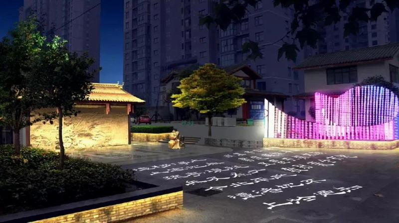 项目依托特色鲜明的历史文化赋能古镇夜景,在古镇西入口加入隶书文化的元素,与雾森、光影的技术相结合,融入景观小品之中,塑造神秘感的同时,又充分展现当地文化精髓,让游客近距离感受上蔡文化。
