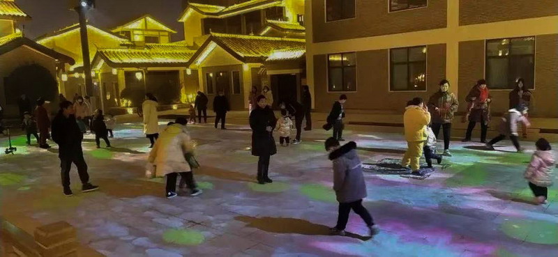 设计师将文化、创意与科技充分融合,通过先进的裸眼3D投影、灵动的互动景观小品等趣味性照明,将当地传统文化与现代科技相结合,传统文化韵味与休闲娱乐相交织,让人一朝步入,梦回蔡国故城。