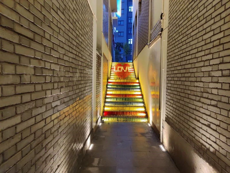 人们漫步在“彩虹人生”长廊上,徜徉行云流水的光影世界里,呈现出人与灯光的和谐互动,带给人们生动的古镇灯光体验感受。