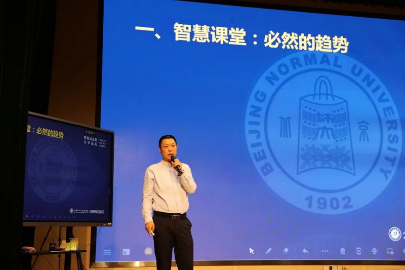 随后,北京师范大学朱京曦博士就智慧课堂的教学意义与作用进行了深入阐述。朱博士从国家战略层面,对政策纲要进行深入解读:“推进信息技术与教学融合,探索建立以学习者为中心的教学新模式是必然趋势。”朱博士同时指出,“一切的教,都是为了学生的学。让学生在教学中绽放生命活力,是智慧课堂的必然要求。”