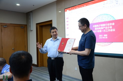 2021年5月12日,中国电子视像行业协会激光电视产业分会2021年工作会议在四川绵阳长虹集团总部召开。会议现场高鹏满座,中国电子视像行业协会领导,青岛海信激光显示股份有限公司、长虹激光显示科技公司、成都菲斯特科技有限公司、深圳光峰科技股份有限公司等20多家成员单位的领导和代表,从全国各地聚会于此,探讨激光显示行业发展现状,增强成员单位凝聚力,共谋激光显示破局新思路和各成员单位合作共赢的新路径。