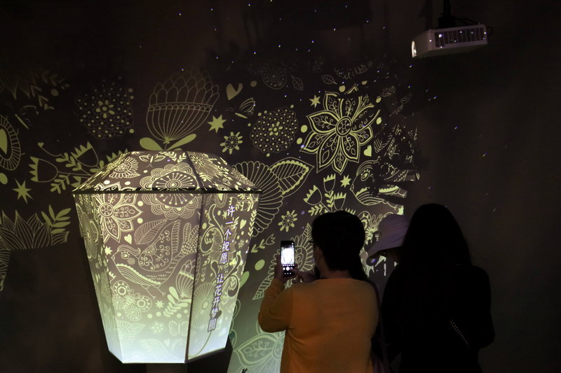 国台办副主任龙明彪参与“蝶舞花宴区”的投影互动,并在科技天灯区许愿。上海市台办主任钟晓敏、崇明区委常委薛红、全国台企联会长李政宏、上海市台协会长张简珍、上海市台办副主任王立新、崇明区副区长张秩通在室内展区前,连线室外展园的嘉宾们共同剪彩。现场领导都肯定台达以视讯科技融合花艺展览让台湾馆更具可看性。