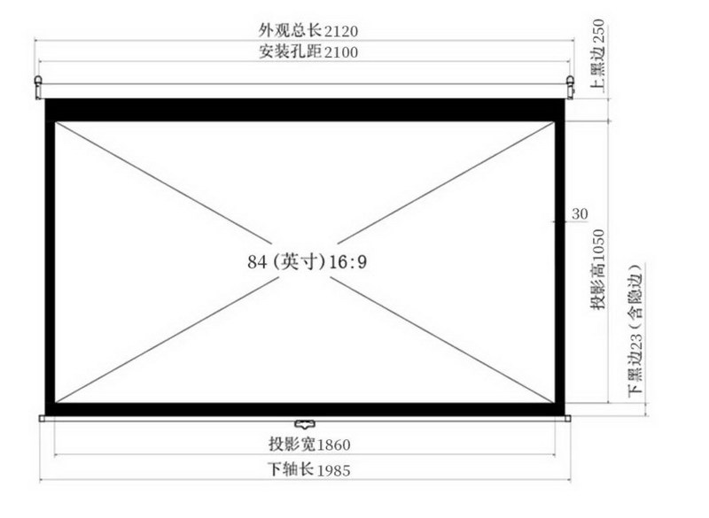 84英寸的幕布宽1.86米,高1.05米左右