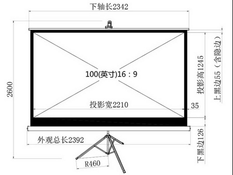 现在市面上主要幕布尺寸是80英寸、84英寸、100英寸、120英寸。