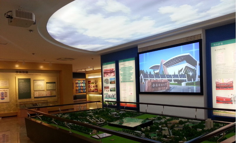 西南财大校史馆记载着她近百年厚重而绚丽的发展历程,新生可以通过校史馆瞻仰西南财大的显赫身世、成就与辉煌。9台NEC高品质投影机结合校史馆的不同显示需求,通过融合、背投、单机等多种投影方案,展示着西南财大的校训与历史,及“经世济民、孜孜以求”的大学精神。