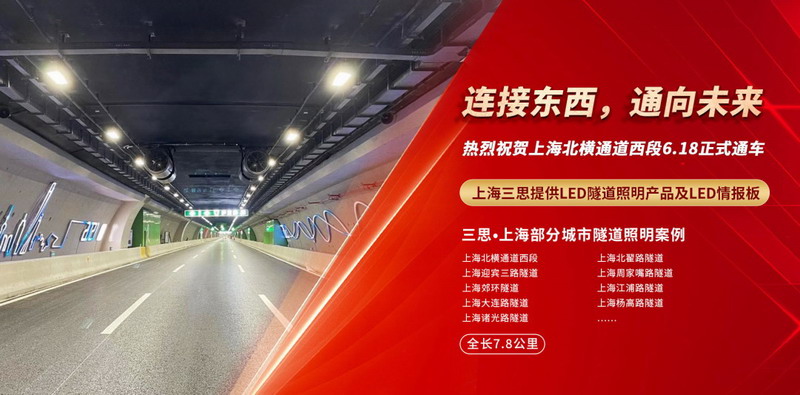 行经隧道时,在柔和舒适的灯光效果下,驾驶员们感受到了日新月异的城市面貌变化。上海三思为北横通道西段提供隧道照明灯具、智能交通引导产品等共计近8000套(件)。长期以来,三思与现场工程团队全力配合安装调试,共同为城市的高速发展添砖加瓦。