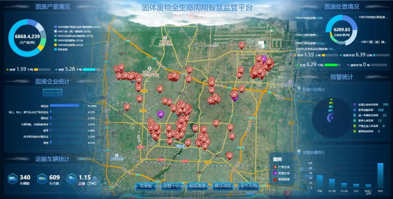 管理人员只需轻触鼠标,辖区内的固废产量、产废企业、固废转移与处置情况、运输车辆及预警信息即可一目了然。