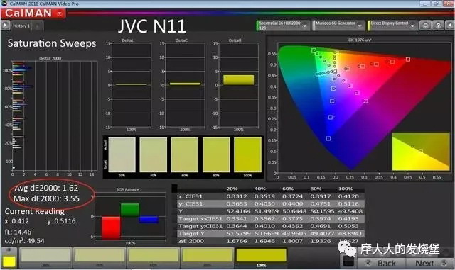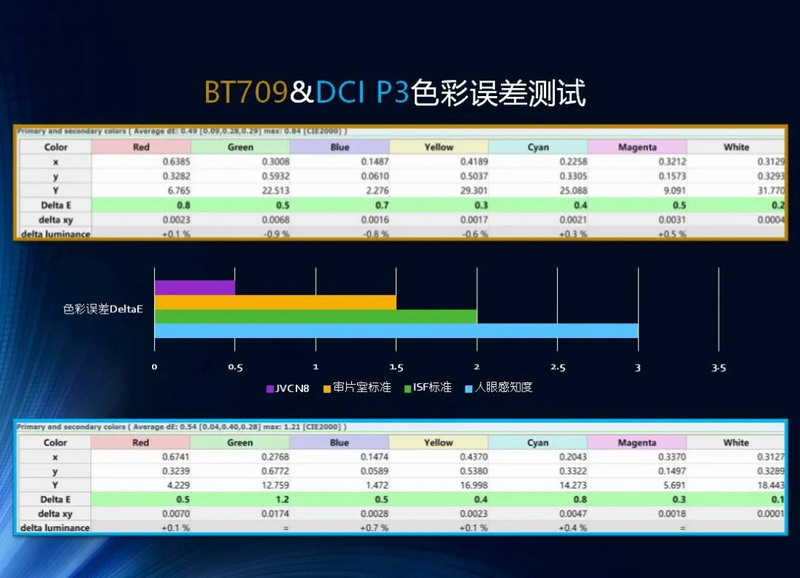 DeltaE低于0.5,JVC N11、N8经过色彩校准可达到的极致色准。