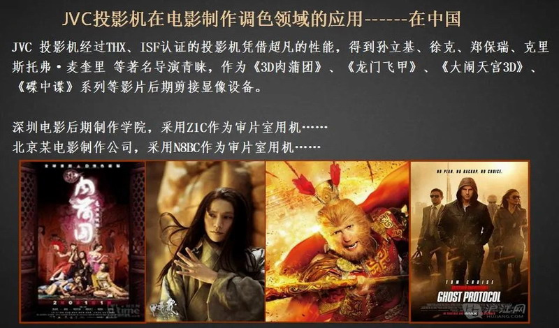 在中国,同样有众多导演、制片公司选用JVC投影进行电影后期制作校准。