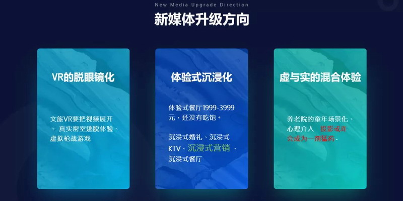 投影机之前给人的印象只是成像和展示,但现在越来越多的沉浸式体验方案正在出现。在新车、新机、新品牌发布会中,利用沉浸式体验和VR的交互应用越来越多。在艺术展馆中,可以将绘画的整个过程进行还原,因为投影机的场景一般不会太亮,通过搭建环境,让大家更沉浸于体验当中。VR场景的脱眼镜化、沉浸化体验以及虚实混合体验是当前新媒体比较重要的升级方向。临展式营销、文化体验消费和文旅将是光影显示的三大应用场景。