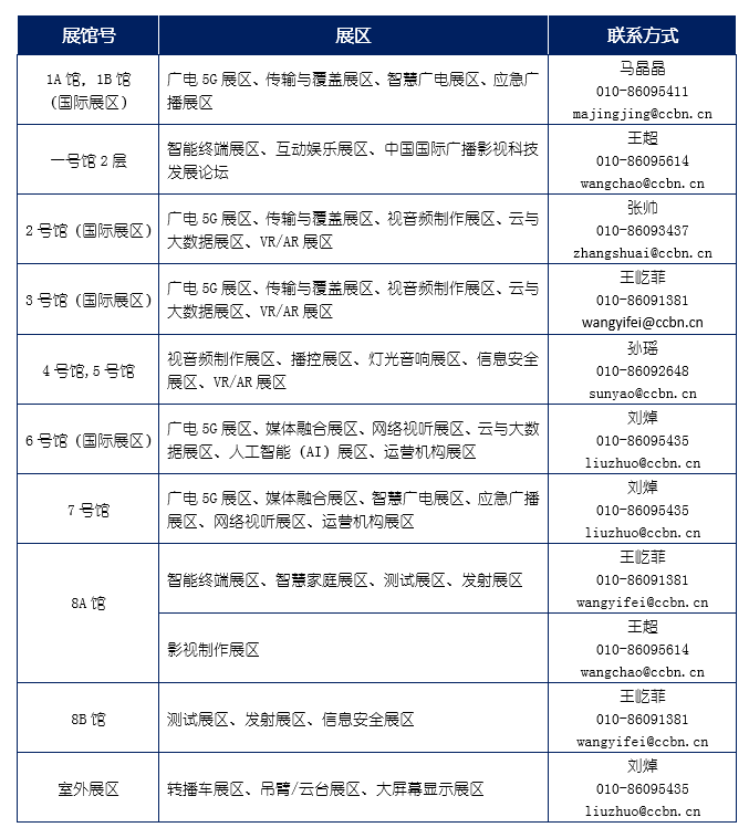 CCBN2022将有国内外近1000家企业和机构参展,覆盖中国国际展览中心全部展馆,展览面积超过60,000㎡;展览内容涵盖广播电视、网络视听、电影、信息化视听、通信、IT、消费电子等多个领域,全面展示采集制作、传输覆盖、运营管理、终端服务等各类技术设备和创新应用。展览亮点包括:5G、人工智能、云计算、大数据、物联网、移动互联网、区块链、光通信等新一代信息技术;超高清/HDR、VR/AR、沉浸式视频、自由视角、三维声、云游戏等高新视频技术应用最新成果;全IP化制播、云转播、IPV6、IPTV/OTT、网络视听、视频增强、智能化监测监管、数字版权保护、信息安全、智能操作系统等广播电视技术IP化、云化、智能化最新进展;多屏融合、后期制作、数字家庭与互动娱乐、信息化视听集成等广播电视技术产品;直播卫星、地面电视、应急广播等公共服务技术平台和产品;智慧广电、媒体融合、县级融媒体中心等方面的创新技术与服务。专业参观观众来自全国各省、自治区、直辖市的各级广电局、广播电视台、融媒体中心、广电网络运营商、通信运营商、网络视听平台、高校院所以及传媒、通信、IT等行业的企事业单位。