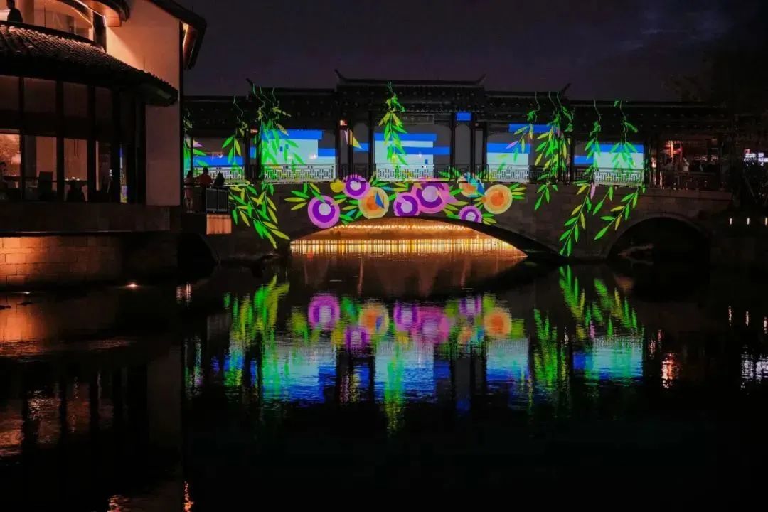 作为 XINTIANDI 原创文化艺术 IP,“光影上海”对蟠龙古镇的千年历史文脉深入挖掘,追溯至明清已有古籍记载的“蟠龙十景”并将其提炼,特邀创意品项策划,青年艺术家王智一创作,运用现代数字光影媒材将蟠龙千年记忆创新演绎,在小桥流水间呈现 最美江南。作为新生代的 90 后艺术家,王智一持续关注着特定场域内“色彩”与“边界”的运动 位移,及其所构成的空间秩序与观者心理层面的关系。在此次的创作作品构思中,王智一沿 用了“色彩”这一标志性的艺术语言,将“蟠龙十景”转化为色彩与图像的运动变幻:粉墙黛瓦 的“曲水萦居”勾勒水乡生活,以非遗编织技艺打造的江南游船带你走进“龙江古渡”,“香花桥 影”和“程祠故里”重现文物建筑之美,“十字街市”上人影攒动,“古寺钟鸣”伴福意远扬……古有文人墨客于蟠龙十景对月吟诗,今有《月见蟠龙》以纷呈光影新绎十景,以月为鉴,勾连着古与今、时与光的旅程,用光影揭开文化之美。