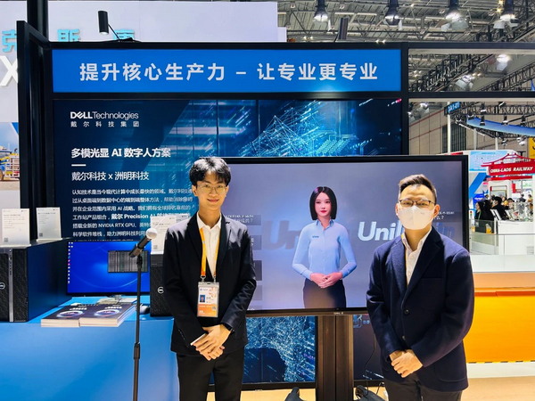 此次进博会上,戴尔科技与洲明科技达成战略合作,将洲明科技的优秀解决方案和交付能力,与戴尔Precision工作站的强大性能完美融合,共同打造出多模光显AI数字人应用的多领域应用解决方案。