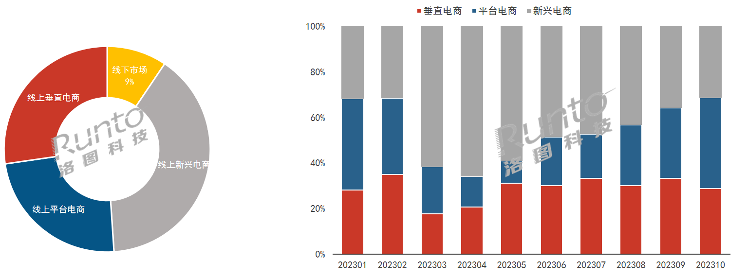 作为新兴智能硬件品类,移动智慧屏厂商优选通过线上渠道迅速打开市场,根据洛图科技(RUNTO)数据显示,截至10月底,线上市场占到了全渠道销量的91%,其中,传统的主流电商平台占据了51%;新兴电商(拼抖快)占据了40%,不过近期的市场表现显示,新兴电商的份额逐月下降,销量逐渐回流传统电商平台。