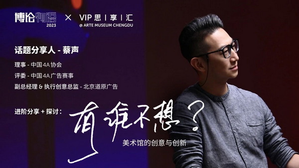 中国 4A 协会理事、北京道原广告副总经理兼执行创意总监 蔡声,在分享美术馆的创意与传播时,表示: