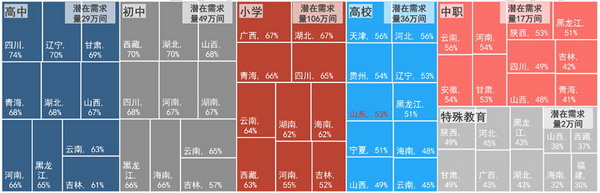 中国大陆落后十省多媒体教室渗透率
