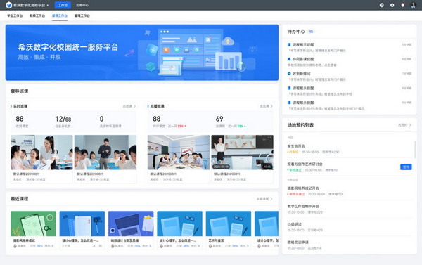 为此,希沃依托强大的教学功能、数字化管理能力、统筹开放能力,推出覆盖高校教、学、评、管、用多个场景的综合管理平台。