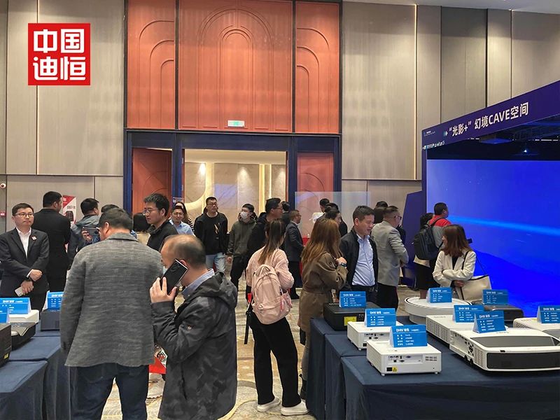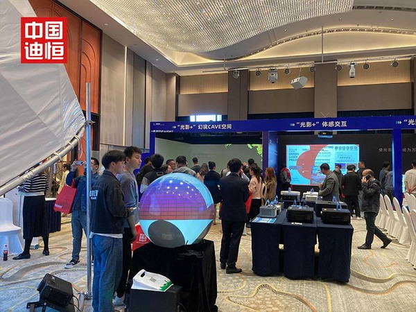 2023年4月26日,中国迪恒携手江苏地区总代联合举办了迪恒当打之年南京品牌推介会暨光影生态大会。本次会议设置了众多展项,包括沉浸式空间、球幕投影、虚空成像、体感交互、3Dmapping等,为众多嘉宾展示了“光影+”的无限应用,也为拓展江苏地区市场提供了强大的助力。