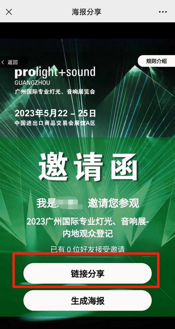 ◆邀请人和被邀请人均需为使用广州国际专业灯光、音响展PC端/微信端内地观众登记注册版,并使用中国大陆居民身份证登记注册的观众;港澳台观众注册系统暂未开放本活动。