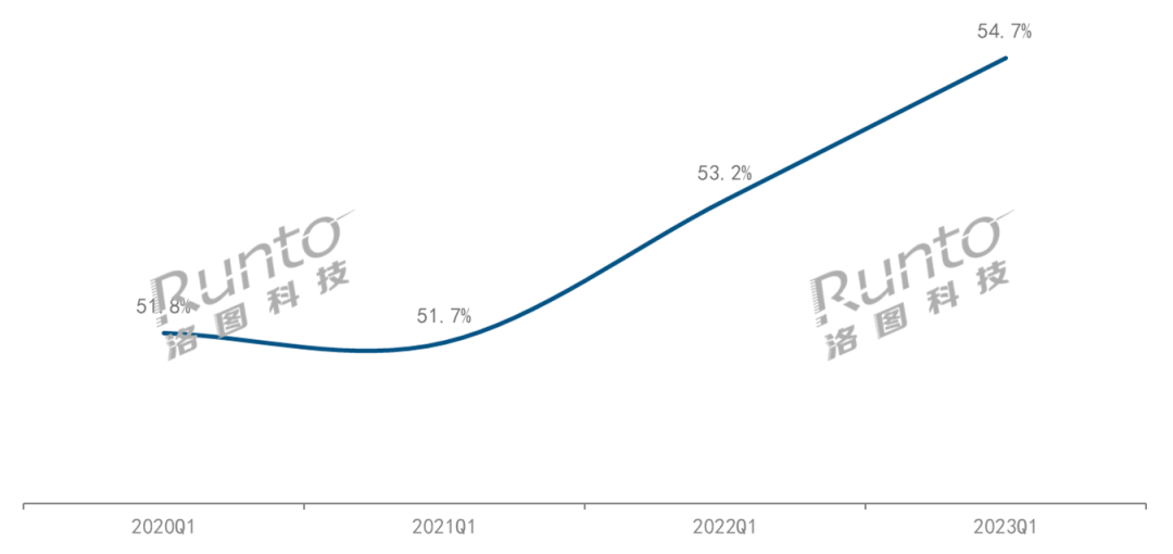 根据洛图科技(RUNTO)数据,2023年第一季度,前四名品牌的市场份额总量CR4为54.7%,集中度有所上升。