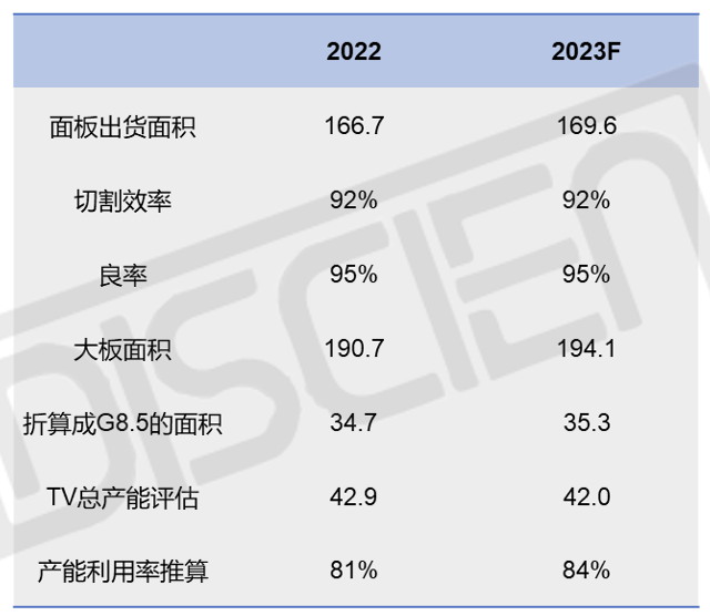 图一:2023年TV面板出货面积预测及产能利用率推算