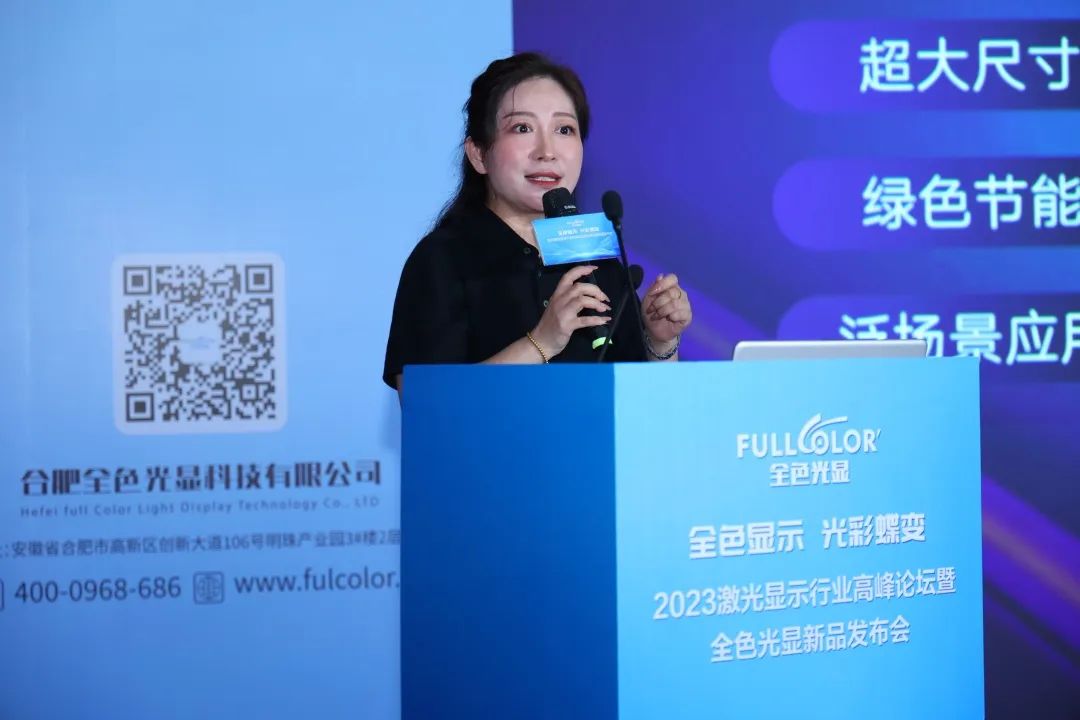 全色光显副总经理李涤非介绍了2023年度全色光显重量级新品——超高亮度全色激光显示产品,亮度最高可达100000流明,支持4K分辨率,超静音运行、全封闭机体,光源寿命达3万小时,可覆盖激光影院、户外楼宇亮化、光影秀、室内外大屏、舞台演艺、展览展示、文化旅游等行业的场景应用需求。