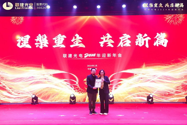 宴会在热烈的气氛中拉开帷幕。首先由联建光电董事长谭炜樑先生进行了致辞,他对过去一年里所有员工的辛勤付出表示感谢,也对新的一年提出了新的期望和要求。他表示新的一年,在联建这艘大船上,大家都能够有所收获,在大家的携手努力下,一定会让这艘大船开得更远更稳!