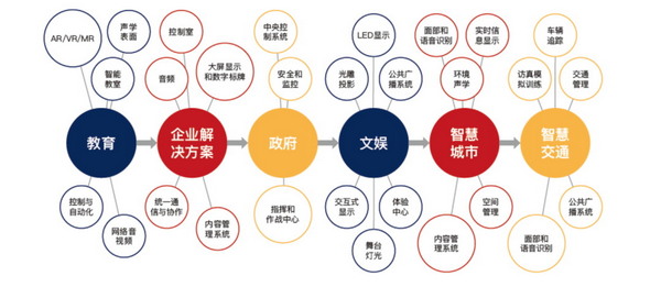 覆盖政府、教育、文娱、企业、智慧城市、智慧交通、酒店等超过30个垂直细分市场。让您一次过探索用于各行业不同场景的视听集成体验方案,掌握最新行业趋势及前沿技术。