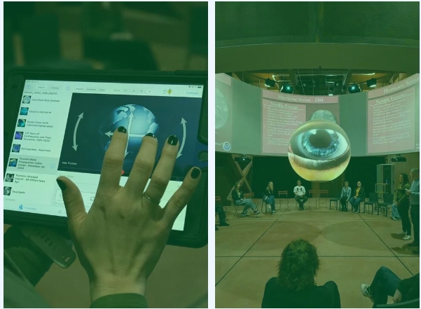 面临的首个挑战是碳纤维球体的安装——这个直径达1.7米的大型球体投影装置,其尺寸受限于安装场所的门框宽度,最终被设计为可拆分的两个半球体进行运输安装。另一大难点在于实现球体投影与外围的环幕投影画面的精准同步。该项目由获得美国国家海洋和大气管理局(NOAA)'科学球体'(Science On a Sphere,SOS)项目官方认证的AV Media Systems公司负责系统集成与调试。